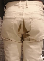 Wat nu gezongen? Gewoon weer gaan zitten is geen optie. Zich omdraaien om naar het toilet te gaan en met toiletpapier het een en het ander op te ruimen, ook niet. Waarschijnlijk heeft de materie zich moeiteloos door de twee lagen textiel heen gebatikt en ziet zijn broek er “bestempeld” uit. Wat vanaf de buitenkant te zien ook zo blijkt.