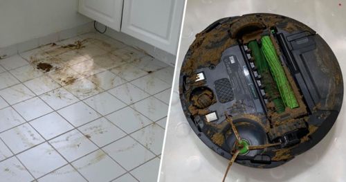 Resultaat: dikke, vieze bruine strepen op de grond, verspreid over de hele keuken en over driekwart van de woonkamer. De stofzuiger zelf staat ergens tussen de tafel en de driezit, met een knipperend lichtje dat smeekt om een opgeladen batterij. De kamer is gevuld met een penetrante, zurig en gistig ruikende lucht als van slecht verteerde koolhydraten, die bij een dierenarts aan Gastro-enteritis of Coeliakie zou doen denken.